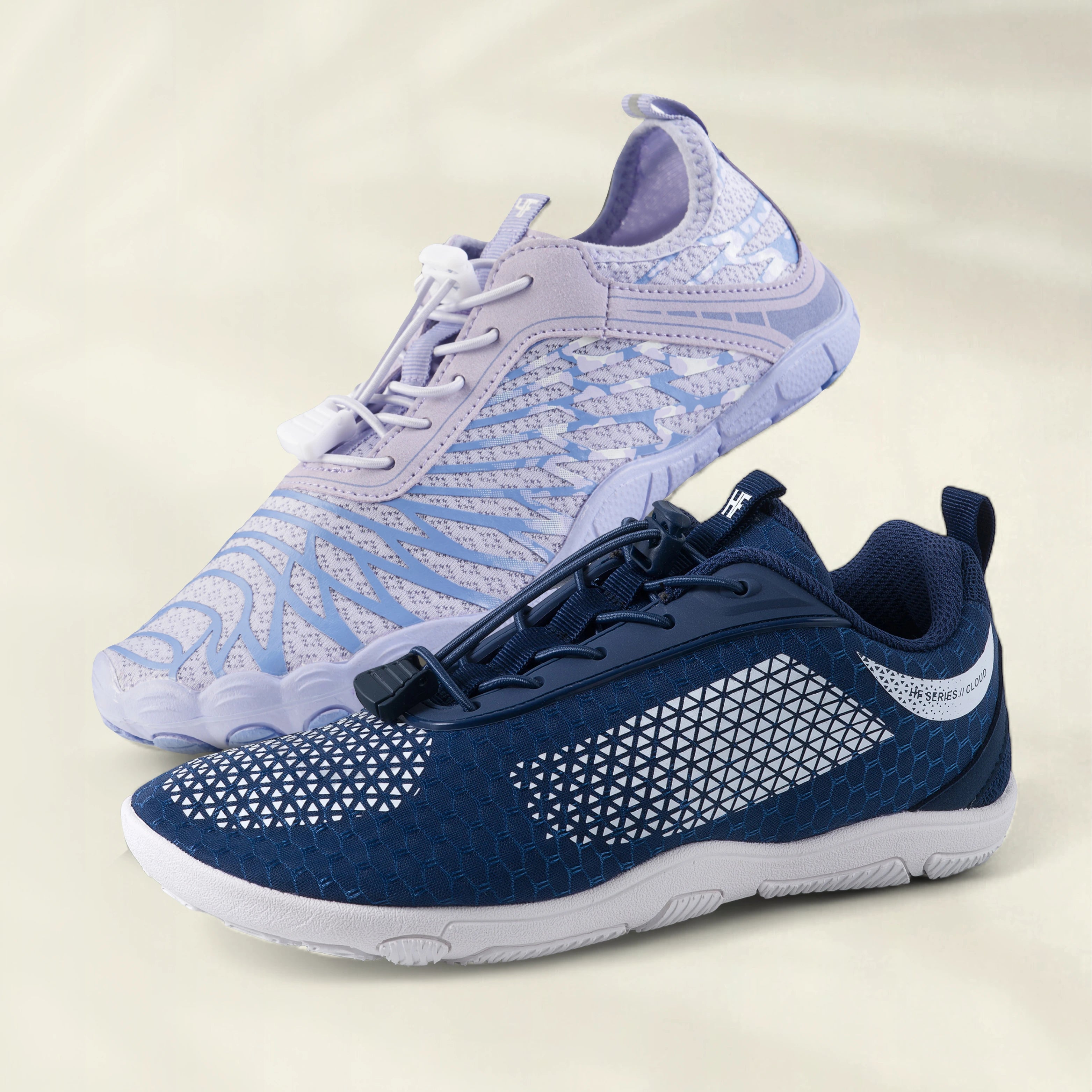 Unlike regular footwear, barefoot shoes have thin, flexible soles, wide toe boxes, and no heel elevation. This design allows for a zero-drop from heel to toe to keep the foot in its natural alignment and promote a more natural gait.