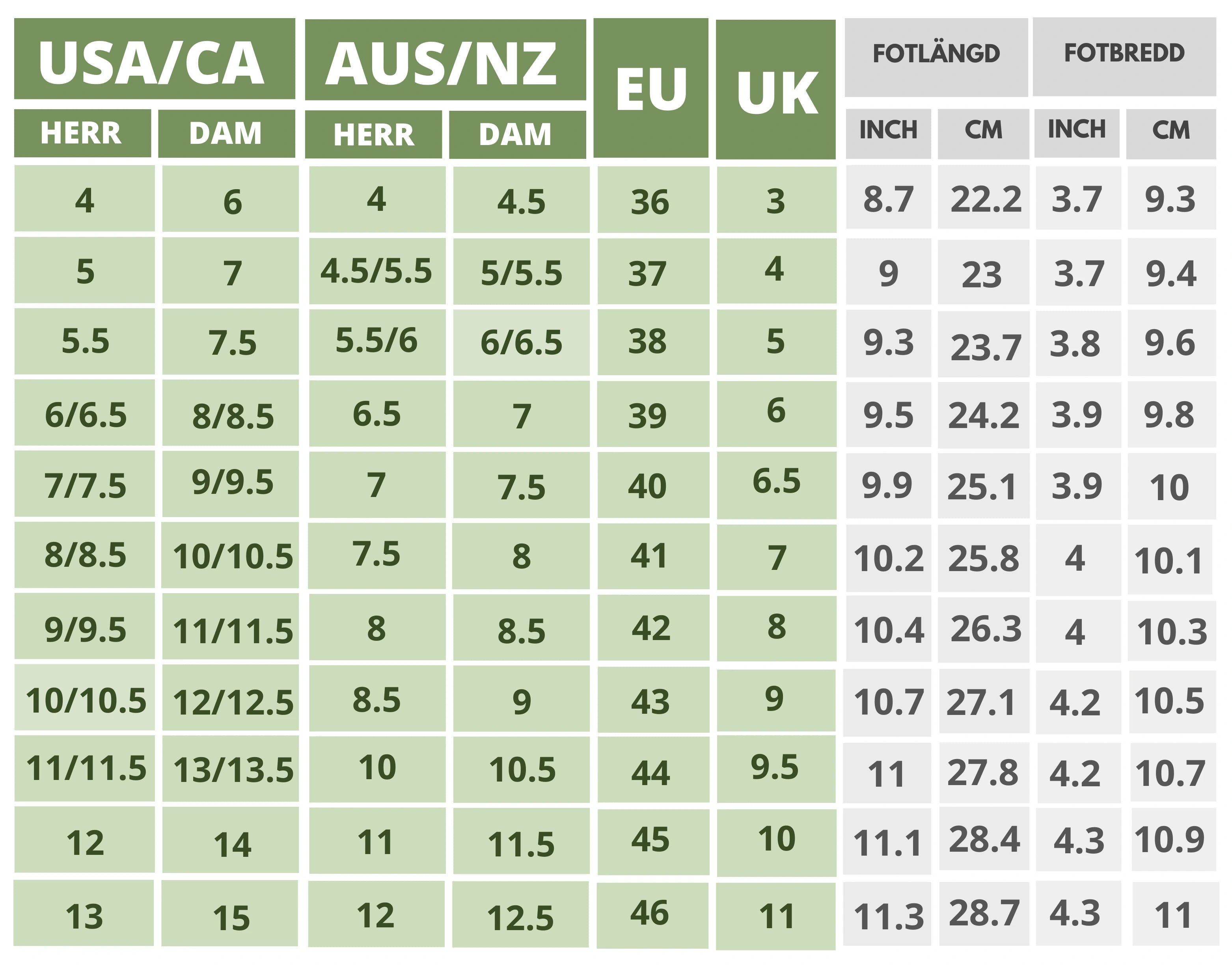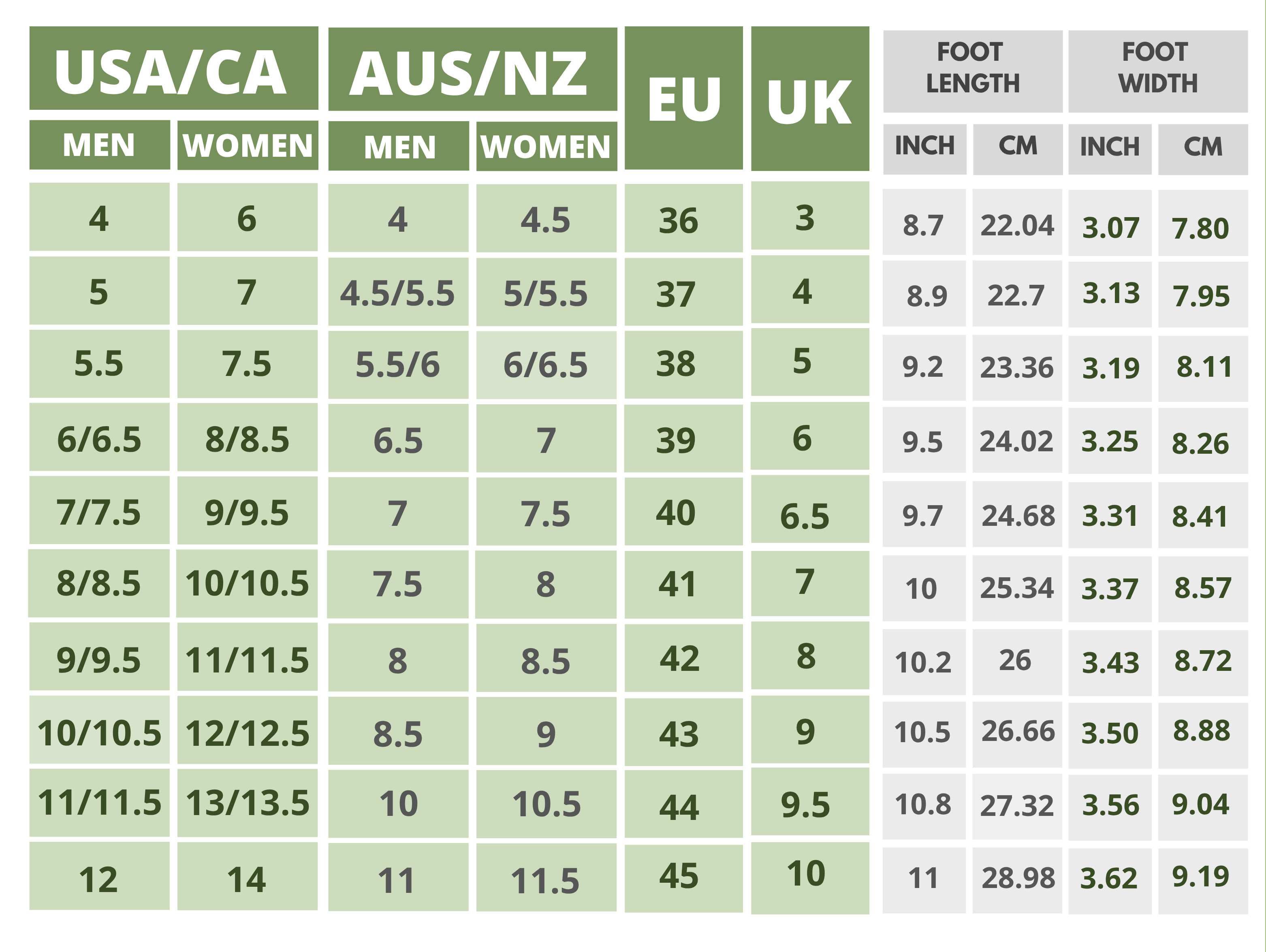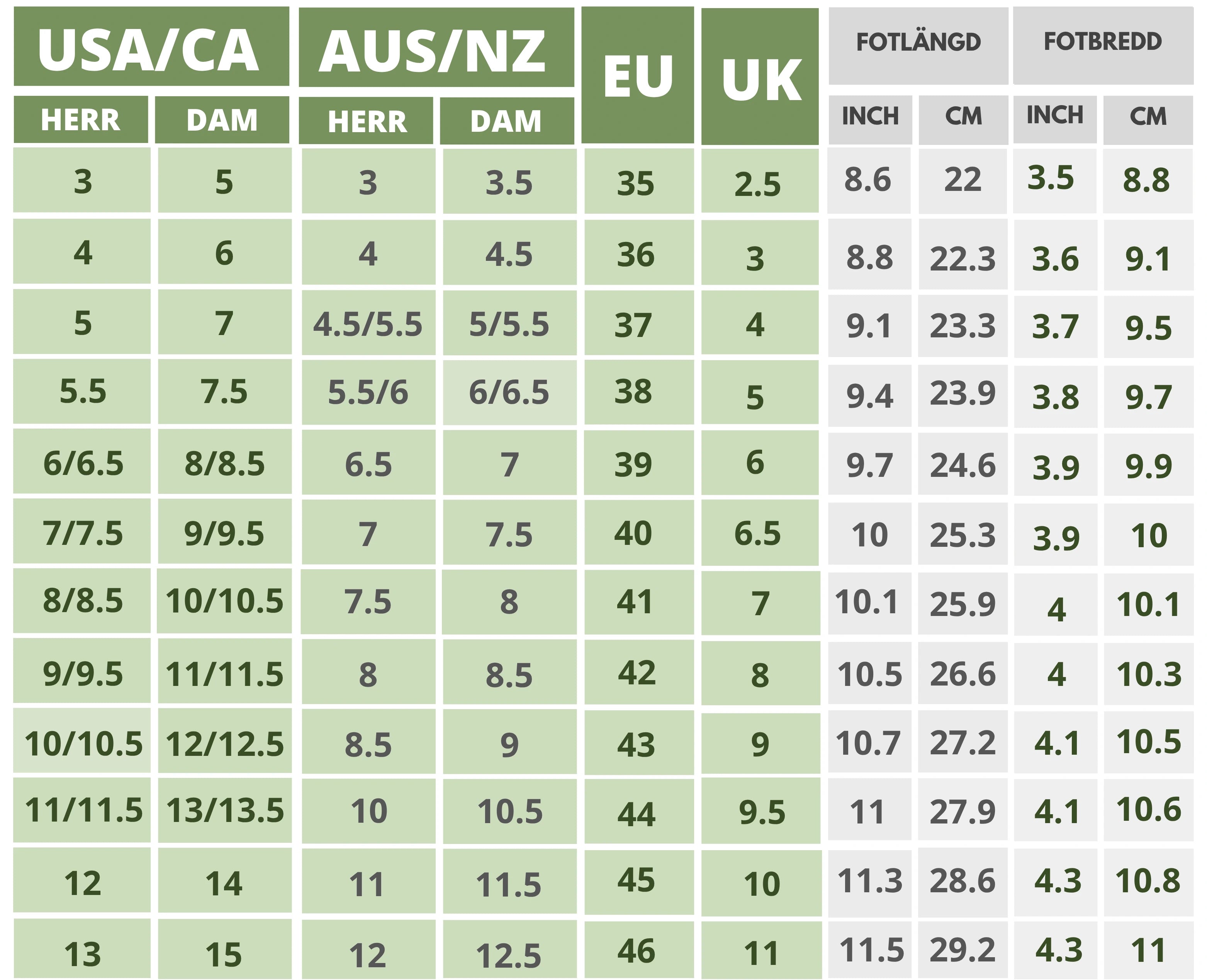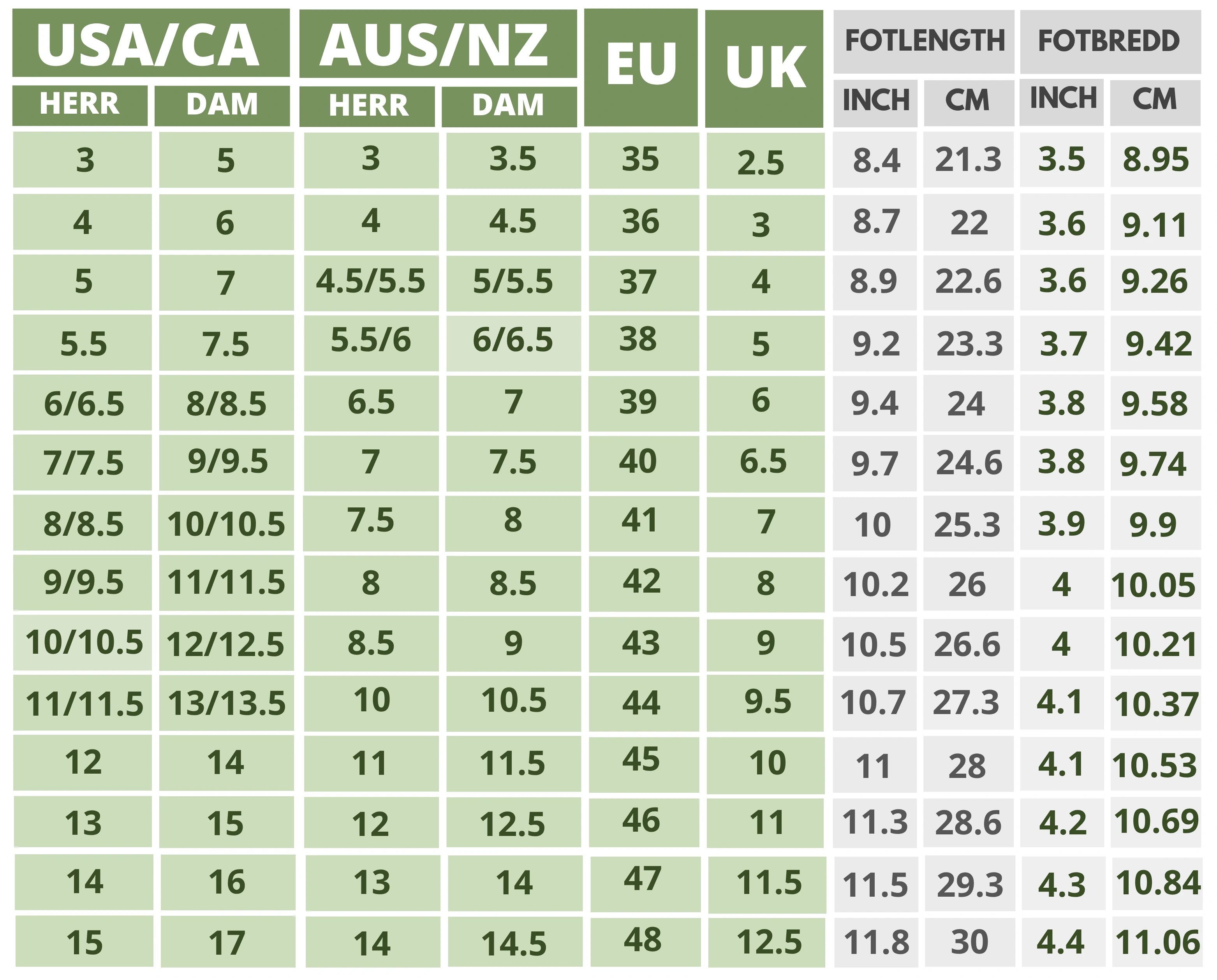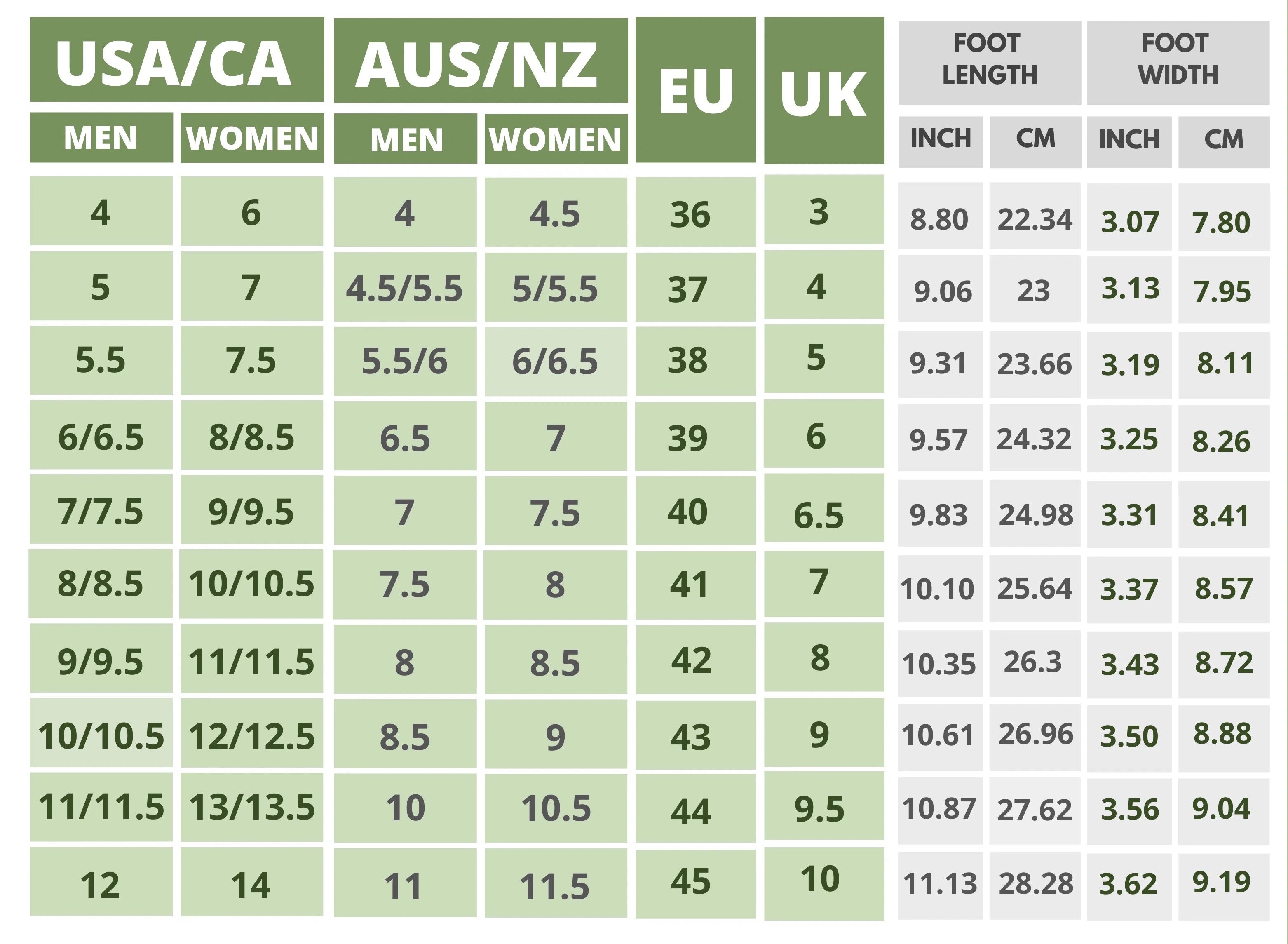 Click On the Shoe Name to Find The Size Chart