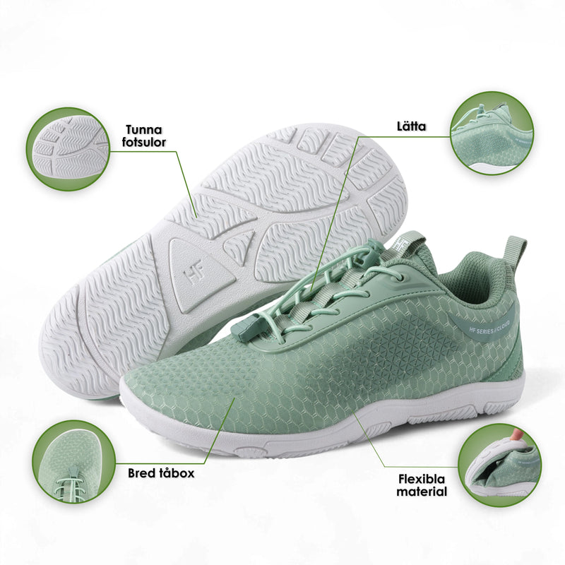 Hikes barfotaskor är utformade för att minska belastningen på lederna och stödja mjuka naturliga rörelser.
